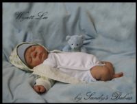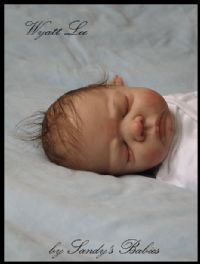 Wyatt Lee is a little chubby newborn baby boy who has been hand-sculpted from Australian clay (Modelene). He has first quality, baked-in soft brown mohair. He has 1/4 sculpted arms and fully (3/4) sculpted legs. He weighs ~6-7 pounds and is ~21-22 inches in length.