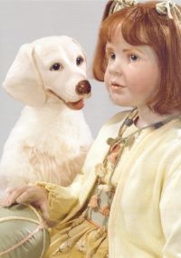 Sophie has a wig hand made from European human hair. Her Dupion silk dress is embroidered with flowers. Her dress has a Takubar silk sash. Her cardigan is decorated with fine crochet work. She wears leather shoes.